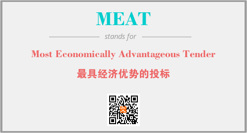 上述内容是“Most Economically Advantageous Tender”作为“MEAT”的缩写,解释为“最具经济优势的投标”时的信息,以及英文缩略词MEAT所代表的英文单词,其对应的中文拼音、详细解释以及在英文中的流行度和相关分类、应用领域及应用示例等。