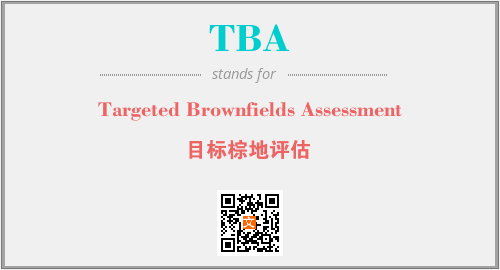 英文缩略词“TBA”经常作为“Targeted Brownfields Assessment”的英文缩写来使用,中文表示:“目标棕地评估”。本文将详细介绍英文缩写词TBA所代表英文单词,其对应的中文拼音、详细解释以及在英语中的流行度。此外,还有关于缩略词TBA的分类、应用领域及相关应用示例等。