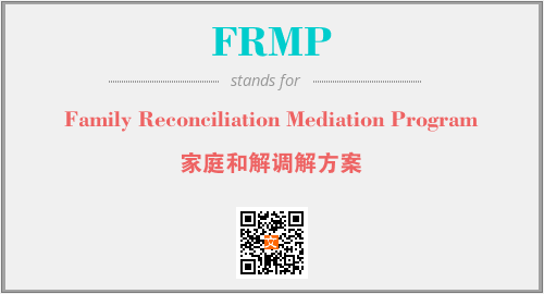 上述内容是“Family Reconciliation Mediation Program”作为“FRMP”的缩写,解释为“家庭和解调解方案”时的信息,以及英文缩略词FRMP所代表的英文单词,其对应的中文拼音、详细解释以及在英文中的流行度和相关分类、应用领域及应用示例等。