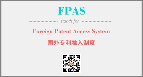 上述内容是“Foreign Patent Access System”作为“FPAS”的缩写,解释为“国外专利准入制度”时的信息,以及英文缩略词FPAS所代表的英文单词,其对应的中文拼音、详细解释以及在英文中的流行度和相关分类、应用领域及应用示例等。