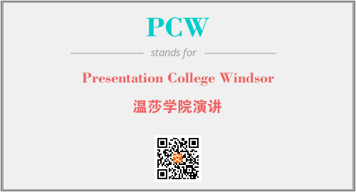 上述内容是“Presentation College Windsor”作为“PCW”的缩写,解释为“温莎学院演讲”时的信息,以及英文缩略词PCW所代表的英文单词,其对应的中文拼音、详细解释以及在英文中的流行度和相关分类、应用领域及应用示例等。