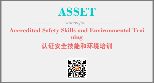 以上为Accredited Safety Skills and Environmental Training英文缩略词ASSET的中文解释,以及该英文缩写在英语的流行度、分类和应用领域方面的信息。