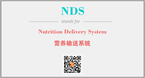 以上为Nutrition Delivery System英文缩略词NDS的中文解释,以及该英文缩写在英语的流行度、分类和应用领域方面的信息。