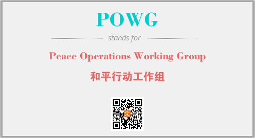 上述内容是“Peace Operations Working Group”作为“POWG”的缩写,解释为“和平行动工作组”时的信息,以及英文缩略词POWG所代表的英文单词,其对应的中文拼音、详细解释以及在英文中的流行度和相关分类、应用领域及应用示例等。