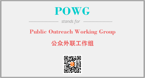上述内容是“Public Outreach Working Group”作为“POWG”的缩写,解释为“公众外联工作组”时的信息,以及英文缩略词POWG所代表的英文单词,其对应的中文拼音、详细解释以及在英文中的流行度和相关分类、应用领域及应用示例等。