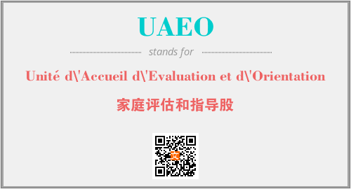 上述内容是“Unité d\'Accueil d\'Evaluation et d\'Orientation”作为“UAEO”的缩写,解释为“家庭评估和指导股”时的信息,以及英文缩略词UAEO所代表的英文单词,其对应的中文拼音、详细解释以及在英文中的流行度和相关分类、应用领域及应用示例等。
