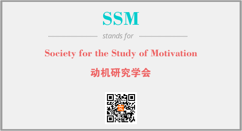 英文缩略词“SSM”经常作为“Society for the Study of Motivation”的英文缩写来使用,中文表示:“动机研究学会”。本文将详细介绍英文缩写词SSM所代表英文单词,其对应的中文拼音、详细解释以及在英语中的流行度。此外,还有关于缩略词SSM的分类、应用领域及相关应用示例等。