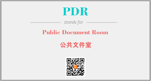 英文缩略词“PDR”经常作为“Public Document Room”的英文缩写来使用,中文表示:“公共文件室”。本文将详细介绍英文缩写词PDR所代表英文单词,其对应的中文拼音、详细解释以及在英语中的流行度。此外,还有关于缩略词PDR的分类、应用领域及相关应用示例等。