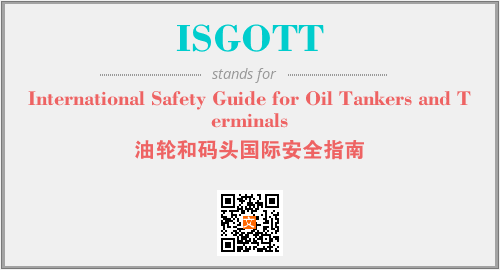 英文缩略词“ISGOTT”经常作为“International Safety Guide for Oil Tankers and Terminals”的英文缩写来使用,中文表示:“油轮和码头国际安全指南”。本文将详细介绍英文缩写词ISGOTT所代表英文单词,其对应的中文拼音、详细解释以及在英语中的流行度。此外,还有关于缩略词ISGOTT的分类、应用领域及相关应用示例等。