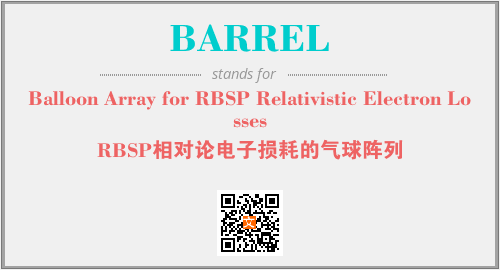 上述内容是“Balloon Array for RBSP Relativistic Electron Losses”作为“BARREL”的缩写,解释为“RBSP相对论电子损耗的气球阵列”时的信息,以及英文缩略词BARREL所代表的英文单词,其对应的中文拼音、详细解释以及在英文中的流行度和相关分类、应用领域及应用示例等。
