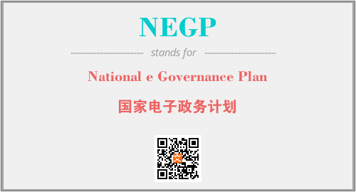 英文缩略词“NEGP”经常作为“National e Governance Plan”的英文缩写来使用,中文表示:“国家电子政务计划”。本文将详细介绍英文缩写词NEGP所代表英文单词,其对应的中文拼音、详细解释以及在英语中的流行度。此外,还有关于缩略词NEGP的分类、应用领域及相关应用示例等。