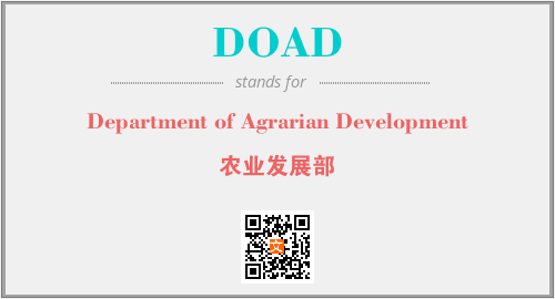 上述内容是“Department of Agrarian Development”作为“DOAD”的缩写,解释为“农业发展部”时的信息,以及英文缩略词DOAD所代表的英文单词,其对应的中文拼音、详细解释以及在英文中的流行度和相关分类、应用领域及应用示例等。