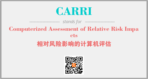 上述内容是“Computerized Assessment of Relative Risk Impacts”作为“CARRI”的缩写,解释为“相对风险影响的计算机评估”时的信息,以及英文缩略词CARRI所代表的英文单词,其对应的中文拼音、详细解释以及在英文中的流行度和相关分类、应用领域及应用示例等。