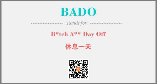 英文缩略词“BADO”经常作为“B*tch A** Day Off”的英文缩写来使用,中文表示:“休息一天”。本文将详细介绍英文缩写词BADO所代表英文单词,其对应的中文拼音、详细解释以及在英语中的流行度。此外,还有关于缩略词BADO的分类、应用领域及相关应用示例等。