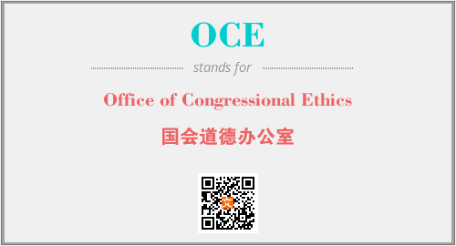 上述内容是“Office of Congressional Ethics”作为“OCE”的缩写,解释为“国会道德办公室”时的信息,以及英文缩略词OCE所代表的英文单词,其对应的中文拼音、详细解释以及在英文中的流行度和相关分类、应用领域及应用示例等。
