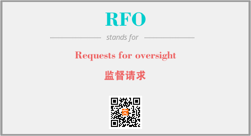 上述内容是“Requests for oversight”作为“RFO”的缩写,解释为“监督请求”时的信息,以及英文缩略词RFO所代表的英文单词,其对应的中文拼音、详细解释以及在英文中的流行度和相关分类、应用领域及应用示例等。