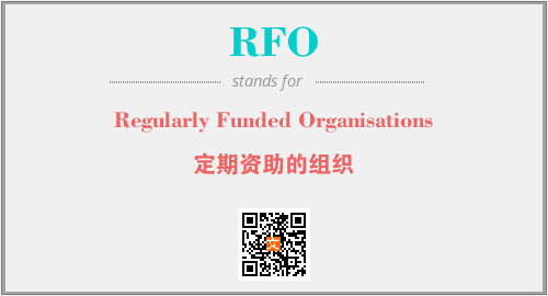 上述内容是“Regularly Funded Organisations”作为“RFO”的缩写,解释为“定期资助的组织”时的信息,以及英文缩略词RFO所代表的英文单词,其对应的中文拼音、详细解释以及在英文中的流行度和相关分类、应用领域及应用示例等。