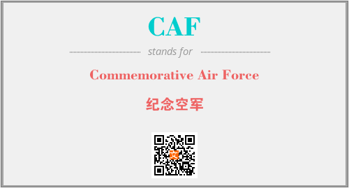 上述内容是“Commemorative Air Force”作为“CAF”的缩写,解释为“纪念空军”时的信息,以及英文缩略词CAF所代表的英文单词,其对应的中文拼音、详细解释以及在英文中的流行度和相关分类、应用领域及应用示例等。