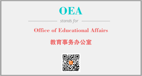 英文缩略词“OEA”经常作为“Office of Educational Affairs”的英文缩写来使用,中文表示:“教育事务办公室”。本文将详细介绍英文缩写词OEA所代表英文单词,其对应的中文拼音、详细解释以及在英语中的流行度。此外,还有关于缩略词OEA的分类、应用领域及相关应用示例等。