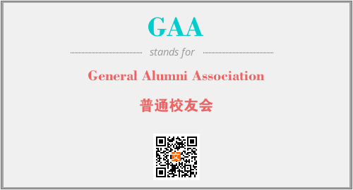 英文缩略词“GAA”经常作为“General Alumni Association”的英文缩写来使用,中文表示:“普通校友会”。本文将详细介绍英文缩写词GAA所代表英文单词,其对应的中文拼音、详细解释以及在英语中的流行度。此外,还有关于缩略词GAA的分类、应用领域及相关应用示例等。