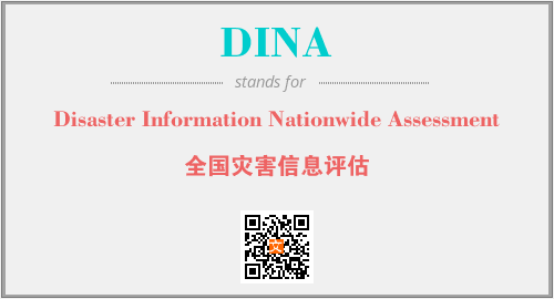 上述内容是“Disaster Information Nationwide Assessment”作为“DINA”的缩写,解释为“全国灾害信息评估”时的信息,以及英文缩略词DINA所代表的英文单词,其对应的中文拼音、详细解释以及在英文中的流行度和相关分类、应用领域及应用示例等。