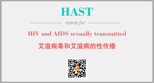 英文缩略词“HAST”经常作为“HIV and AIDS sexually transmitted”的英文缩写来使用,中文表示:“艾滋病毒和艾滋病的性传播”。本文将详细介绍英文缩写词HAST所代表英文单词,其对应的中文拼音、详细解释以及在英语中的流行度。此外,还有关于缩略词HAST的分类、应用领域及相关应用示例等。