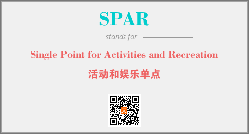 上述内容是“Single Point for Activities and Recreation”作为“SPAR”的缩写,解释为“活动和娱乐单点”时的信息,以及英文缩略词SPAR所代表的英文单词,其对应的中文拼音、详细解释以及在英文中的流行度和相关分类、应用领域及应用示例等。