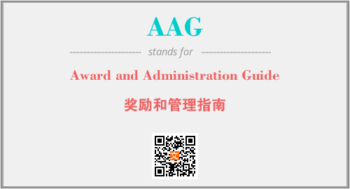 上述内容是“Award and Administration Guide”作为“AAG”的缩写,解释为“奖励和管理指南”时的信息,以及英文缩略词AAG所代表的英文单词,其对应的中文拼音、详细解释以及在英文中的流行度和相关分类、应用领域及应用示例等。