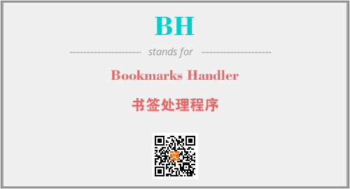 英文缩略词“BH”经常作为“Bookmarks Handler”的英文缩写来使用,中文表示:“书签处理程序”。本文将详细介绍英文缩写词BH所代表英文单词,其对应的中文拼音、详细解释以及在英语中的流行度。此外,还有关于缩略词BH的分类、应用领域及相关应用示例等。