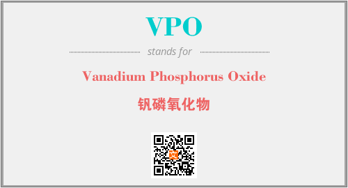 上述内容是“Vanadium Phosphorus Oxide”作为“VPO”的缩写,解释为“钒磷氧化物”时的信息,以及英文缩略词VPO所代表的英文单词,其对应的中文拼音、详细解释以及在英文中的流行度和相关分类、应用领域及应用示例等。
