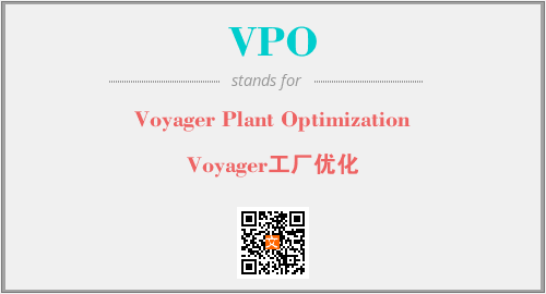 上述内容是“Voyager Plant Optimization”作为“VPO”的缩写,解释为“Voyager工厂优化”时的信息,以及英文缩略词VPO所代表的英文单词,其对应的中文拼音、详细解释以及在英文中的流行度和相关分类、应用领域及应用示例等。