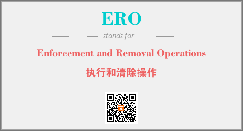 上述内容是“Enforcement and Removal Operations”作为“ERO”的缩写,解释为“执行和清除操作”时的信息,以及英文缩略词ERO所代表的英文单词,其对应的中文拼音、详细解释以及在英文中的流行度和相关分类、应用领域及应用示例等。