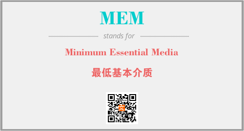 英文缩略词“MEM”经常作为“Minimum Essential Media”的英文缩写来使用,中文表示:“最低基本介质”。本文将详细介绍英文缩写词MEM所代表英文单词,其对应的中文拼音、详细解释以及在英语中的流行度。此外,还有关于缩略词MEM的分类、应用领域及相关应用示例等。
