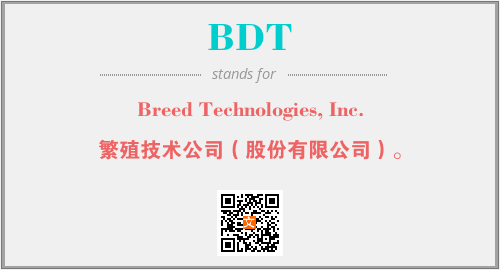 上述内容是“Breed Technologies, Inc.”作为“BDT”的缩写,解释为“繁殖技术公司(股份有限公司)。”时的信息,以及英文缩略词BDT所代表的英文单词,其对应的中文拼音、详细解释以及在英文中的流行度和相关分类、应用领域及应用示例等。