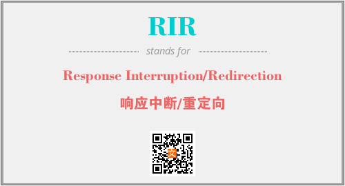 上述内容是“Response Interruption/Redirection”作为“RIR”的缩写,解释为“响应中断/重定向”时的信息,以及英文缩略词RIR所代表的英文单词,其对应的中文拼音、详细解释以及在英文中的流行度和相关分类、应用领域及应用示例等。