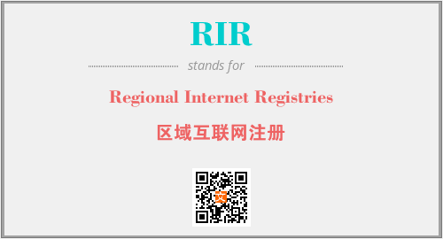英文缩略词“RIR”经常作为“Regional Internet Registries”的英文缩写来使用,中文表示:“区域互联网注册”。本文将详细介绍英文缩写词RIR所代表英文单词,其对应的中文拼音、详细解释以及在英语中的流行度。此外,还有关于缩略词RIR的分类、应用领域及相关应用示例等。