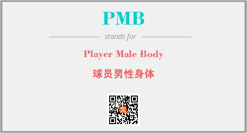 英文缩略词“PMB”经常作为“Player Male Body”的英文缩写来使用,中文表示:“球员男性身体”。本文将详细介绍英文缩写词PMB所代表英文单词,其对应的中文拼音、详细解释以及在英语中的流行度。此外,还有关于缩略词PMB的分类、应用领域及相关应用示例等。
