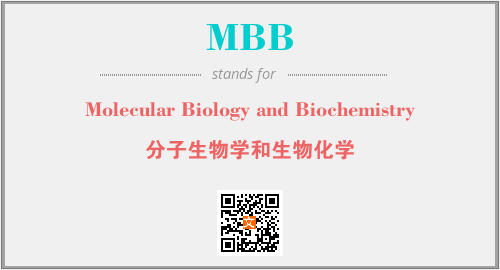 上述内容是“Molecular Biology and Biochemistry”作为“MBB”的缩写,解释为“分子生物学和生物化学”时的信息,以及英文缩略词MBB所代表的英文单词,其对应的中文拼音、详细解释以及在英文中的流行度和相关分类、应用领域及应用示例等。