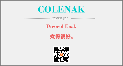 上述内容是“Dicocol Enak”作为“COLENAK”的缩写,解释为“煮得很好。”时的信息,以及英文缩略词COLENAK所代表的英文单词,其对应的中文拼音、详细解释以及在英文中的流行度和相关分类、应用领域及应用示例等。