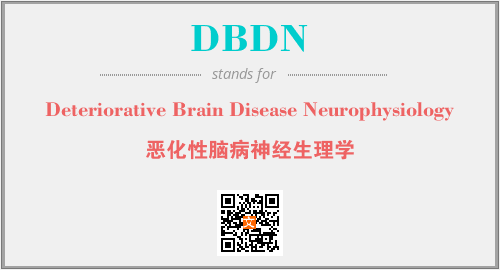 上述内容是“Deteriorative Brain Disease Neurophysiology”作为“DBDN”的缩写,解释为“恶化性脑病神经生理学”时的信息,以及英文缩略词DBDN所代表的英文单词,其对应的中文拼音、详细解释以及在英文中的流行度和相关分类、应用领域及应用示例等。