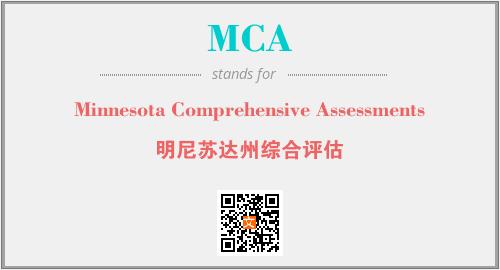 上述内容是“Minnesota Comprehensive Assessments”作为“MCA”的缩写,解释为“明尼苏达州综合评估”时的信息,以及英文缩略词MCA所代表的英文单词,其对应的中文拼音、详细解释以及在英文中的流行度和相关分类、应用领域及应用示例等。