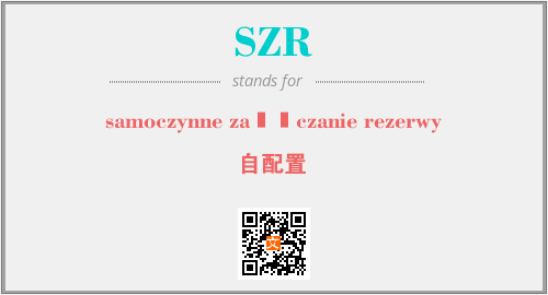 上述内容是“samoczynne załączanie rezerwy”作为“SZR”的缩写,解释为“自配置”时的信息,以及英文缩略词SZR所代表的英文单词,其对应的中文拼音、详细解释以及在英文中的流行度和相关分类、应用领域及应用示例等。