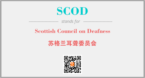 上述内容是“Scottish Council on Deafness”作为“SCOD”的缩写,解释为“苏格兰耳聋委员会”时的信息,以及英文缩略词SCOD所代表的英文单词,其对应的中文拼音、详细解释以及在英文中的流行度和相关分类、应用领域及应用示例等。