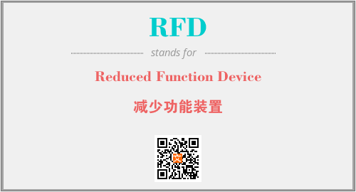 上述内容是“Reduced Function Device”作为“RFD”的缩写,解释为“减少功能装置”时的信息,以及英文缩略词RFD所代表的英文单词,其对应的中文拼音、详细解释以及在英文中的流行度和相关分类、应用领域及应用示例等。