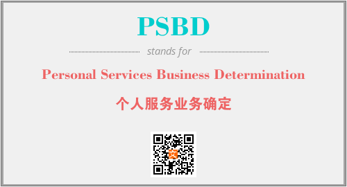 以上为Personal Services Business Determination英文缩略词PSBD的中文解释,以及该英文缩写在英语的流行度、分类和应用领域方面的信息。