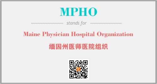上述内容是“Maine Physician Hospital Organization”作为“MPHO”的缩写,解释为“缅因州医师医院组织”时的信息,以及英文缩略词MPHO所代表的英文单词,其对应的中文拼音、详细解释以及在英文中的流行度和相关分类、应用领域及应用示例等。
