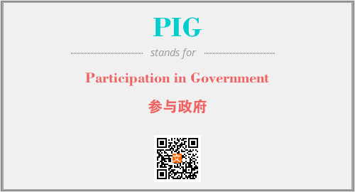 上述内容是“Participation in Government”作为“PIG”的缩写,解释为“参与政府”时的信息,以及英文缩略词PIG所代表的英文单词,其对应的中文拼音、详细解释以及在英文中的流行度和相关分类、应用领域及应用示例等。