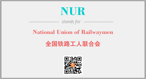 上述内容是“National Union of Railwaymen”作为“NUR”的缩写,解释为“全国铁路工人联合会”时的信息,以及英文缩略词NUR所代表的英文单词,其对应的中文拼音、详细解释以及在英文中的流行度和相关分类、应用领域及应用示例等。
