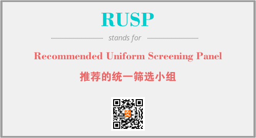 英文缩略词“RUSP”经常作为“Recommended Uniform Screening Panel”的英文缩写来使用,中文表示:“推荐的统一筛选小组”。本文将详细介绍英文缩写词RUSP所代表英文单词,其对应的中文拼音、详细解释以及在英语中的流行度。此外,还有关于缩略词RUSP的分类、应用领域及相关应用示例等。