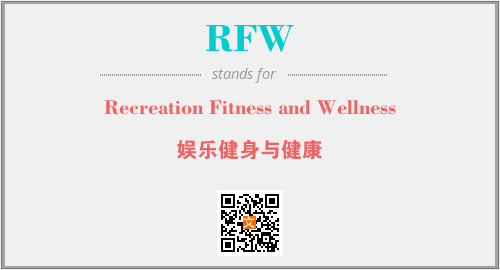 英文缩略词“RFW”经常作为“Recreation Fitness and Wellness”的英文缩写来使用,中文表示:“娱乐健身与健康”。本文将详细介绍英文缩写词RFW所代表英文单词,其对应的中文拼音、详细解释以及在英语中的流行度。此外,还有关于缩略词RFW的分类、应用领域及相关应用示例等。